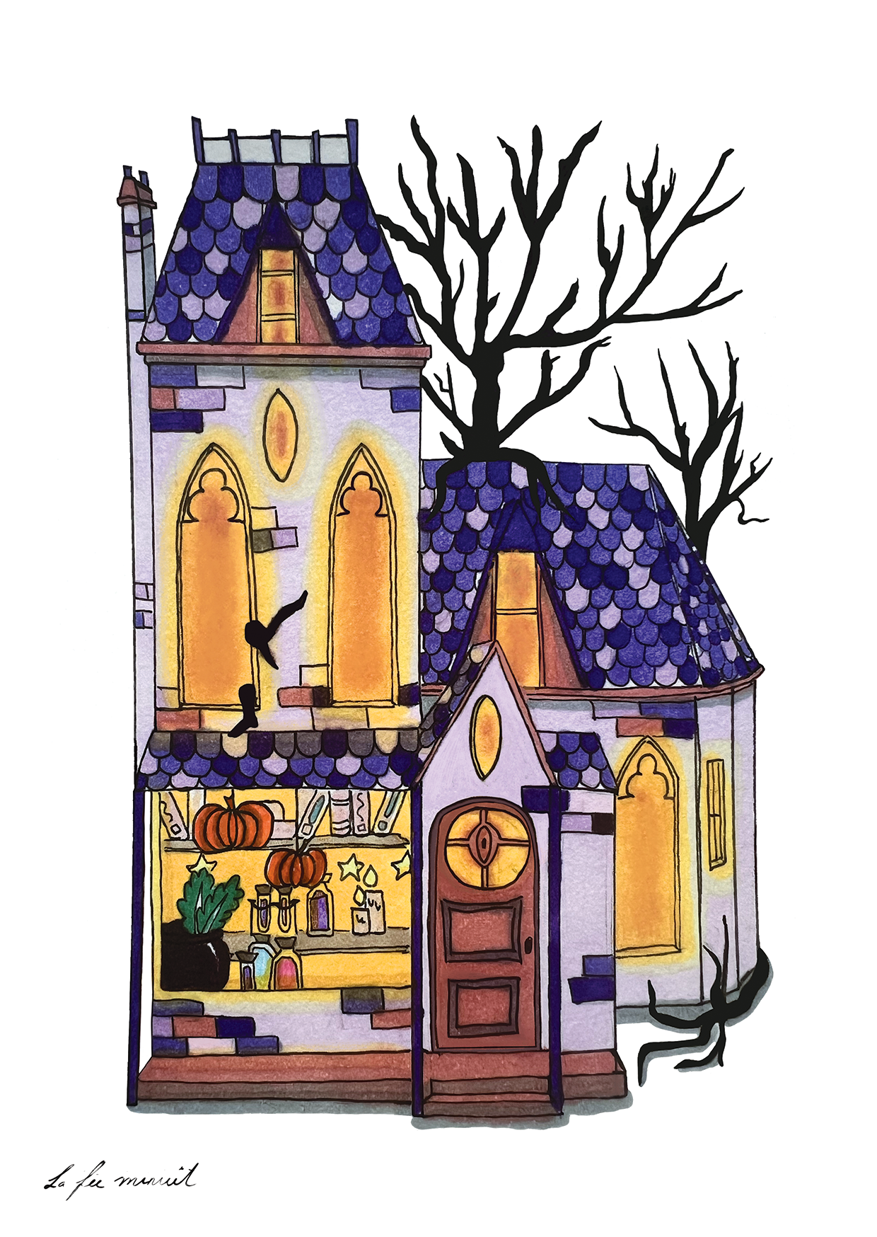 Illustration réalisée main feutre noir et feutre à alcool